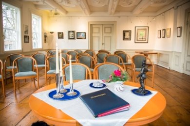 Unsere Standesbeamten halten sich, natürlich im rechtlichen Rahmen, gerne an Ihre Wünsche. Sie möchten Ihre Eheschließung im möglichst kleinen Rahmen halten? Dann können Sie sich ganz zwanglos im "kleinen" Trauzimmer direkt neben dem Standesamt nur mit dem Standesbeamten oder maximal 15 Gästen Ihr JA -Wort geben.
